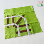 Binding: Mein Binding hat eine Breite von 2 1/4″. Wenn Du, wie ich, für die Aufhänger den gleichen Stoff wie für das Binding verwendest, brauchst Du 2 Streifen bei einer Stoffbreite von 42 inch. Näh die beiden Streifen zusammen, schneide dann anschließend 2 kurze Stücke á 5″ für die Anhänger ab.